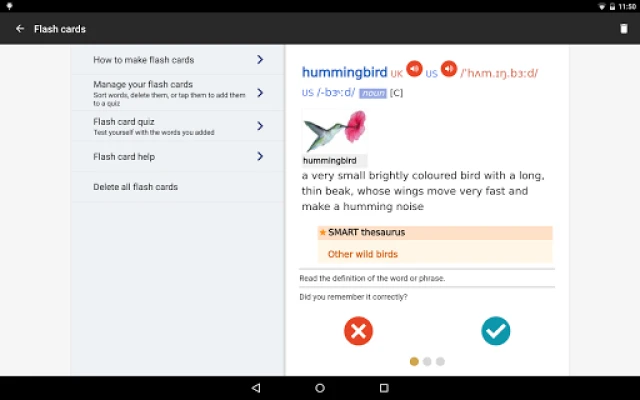 • Flash Card Quiz to help you memorize new words.