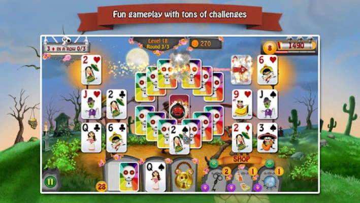 There is an old legend in Mexico that on "Dia de los Muertos" the Day of the Dead, the gates of heaven will open and the souls of our loved ones can visit the land of the living. That's where the story of Manuel and Maria begins. An evil soul has kidnapped Maria. And now Manuel asks for your help to join him in this incredible adventure through the land of the dead after his beloved bride. Journey through beautiful scenery, relaxing music and help funny characters to find their belongings. Prove your skills in this challenging solitaire game!