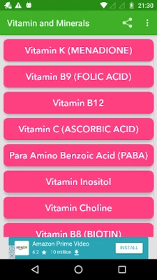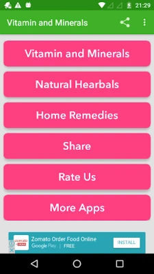 Best app to know about vitamin and minerals uses , health benifits ,natural source ,home remedies ,natural herbals etc. Must real all things if you want to make your immunity strong and keep away from doctor .You can get all vitamin and minerals from natural source and its 100% safe from our body .